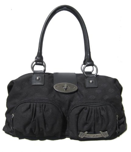 Harley-Davidson® Women's B&S Knoxville Satchel Jacquard Shoulder Bag Purse. Leather Trim. Hanging Charms. S2575J-BLK Best