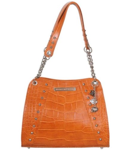 Harley-Davidson® Women's Leather Croco Orange Shopper Bag Purse. Studs. Hanging Charms. OC4450L-ORG Best